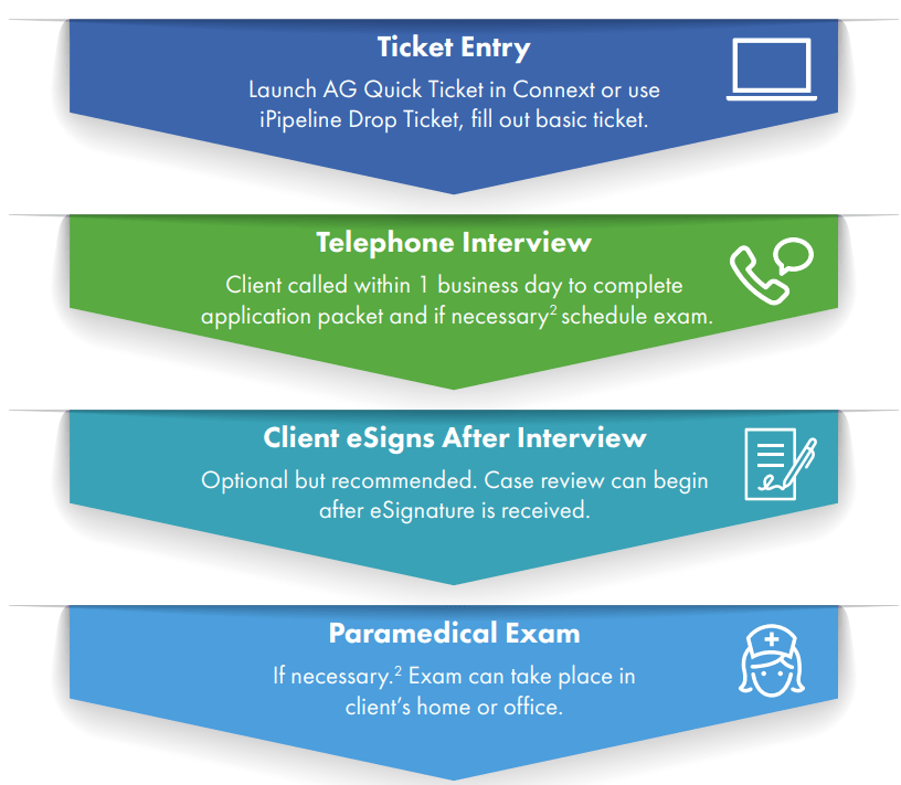 American General (AG) quick ticket is a simple, intuitive online application submission tool from American General. The tool is used for their Universal Life and Term business. This ticket entry helps to reduce application error or delay. The ticket entry also allows for a streamlined UW review. The tool is even available for all of the life policies offered by American General. This includes all eligible non-medical cases. Here are some important quick ticket reminders.